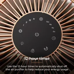 Operates at a low decibel setting, with the display automatically dimming the LED lights to create a peaceful sleeping environment. The 12-hour timer automatically shuts off the air purifier