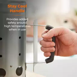 The pan is complete with a stay cool plastic handle to provide added safety around high temperatures, for complete comfort and control over your charcoal