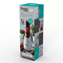 Create perfectly blended textures with ease using the presto personal blender. Housing a 260W motor and a durable stainless steel cutting blade, you can effortlessly blend through fruits and vegetables to create delicious soups, smoothies and dips. With a simple one touch switch to begin operation, you can easily attach the included sports bottle, ideal for taking your smoothies on the go to work or the gym. The locking mechanism activates during blending for safe and secure operation.