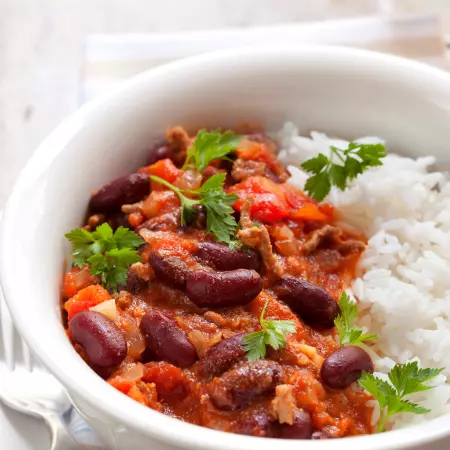 Cook a hearty chili in one pot by combining minced beef, beans, diced tomatoes, and spices. Let it simmer until the flavours meld together for a deliciously rich flavour, then serve with rice.