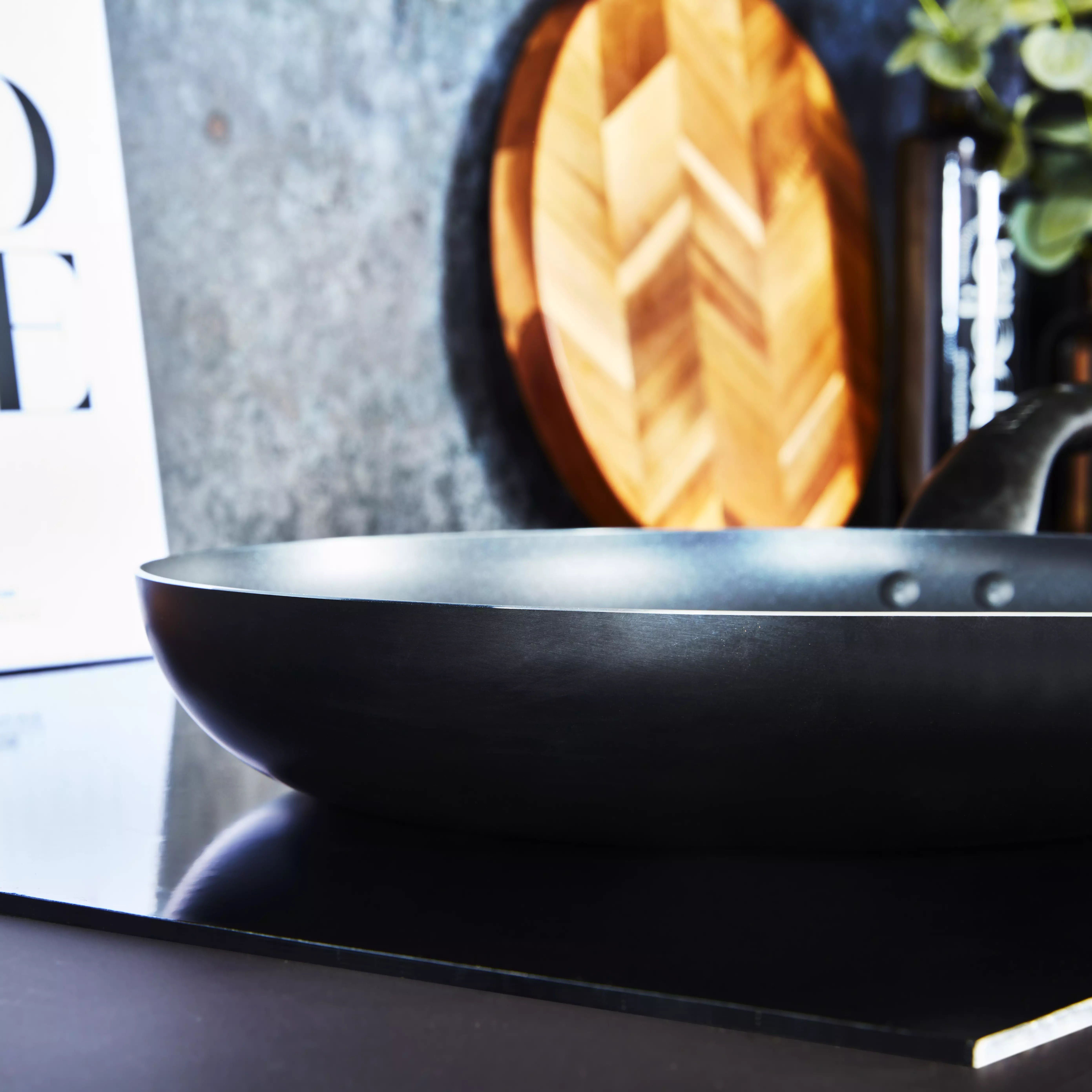 They feature a SmartStart tick temperature sensor that has been expertly designed for effortless cooking. The centre of the pan changes to dark red once the optimum temperature has been reached, ensuring no hotspots and perfect cooking every time.