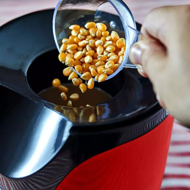As it is so simple to use, you can even get the kids involved. Complete with a handy measuring cup, just flick the switch, look through the transparent viewing lid and watch delicious popcorn form right in front of your eyes. Put the popcorn in little paper bags and you can make it seem like a real movie theatre with ease.