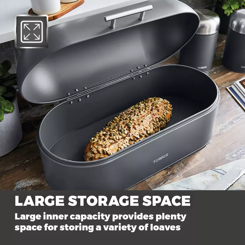 Lock in the freshness for longer with the durable iron, powder-coated Infinity Stone bread bin from Tower