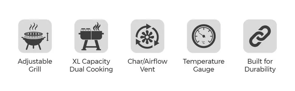 Dual function charcoal BBQ grillHigh temp/Heat resistant powder coated steel body