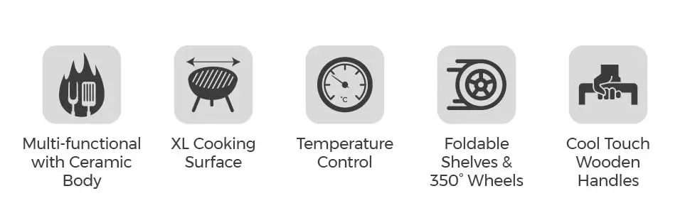 Ceramic body with steel frame and wheelsVersatile grill can smoke/bake/grill/sear food easily