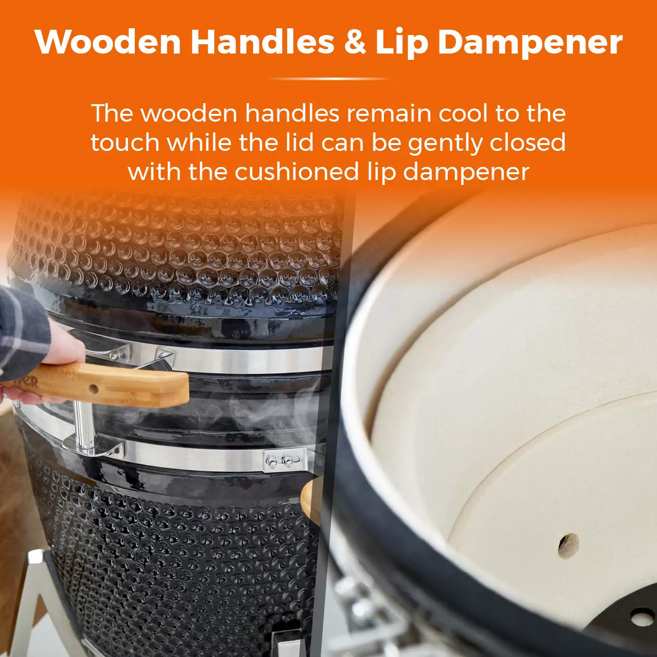 Kamado XL Ceramic Charcoal BBQ with Collapsible Wooden Shelves