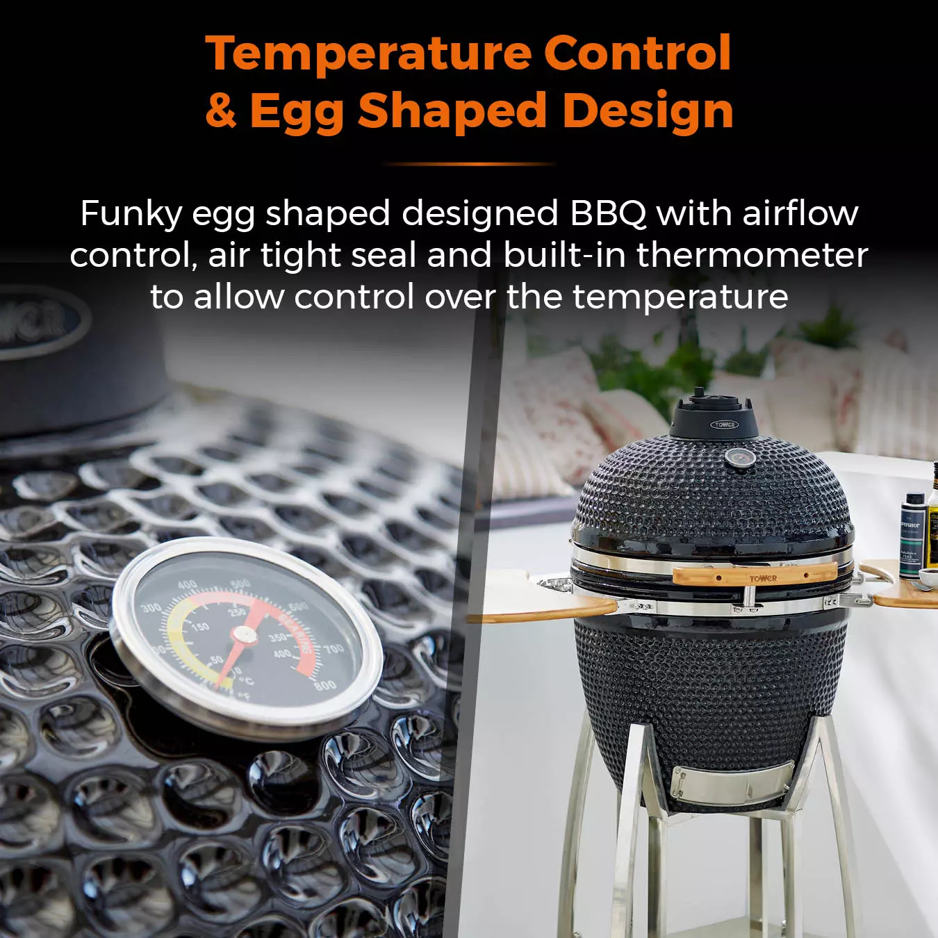 Tower Kamado XL Ceramic Charcoal BBQ with Collapsible Wooden Shelves