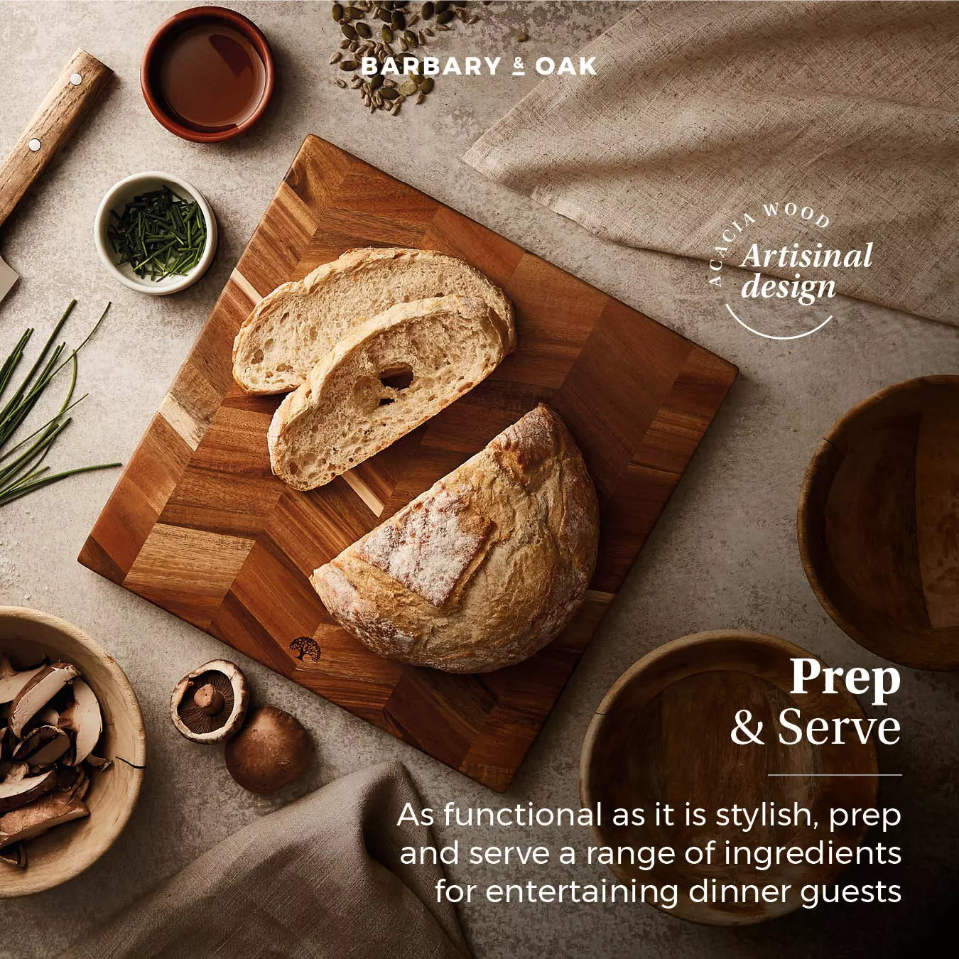 Square acacia wood chopping boardPerfect for all types of food including meat / fish / fruit and veg