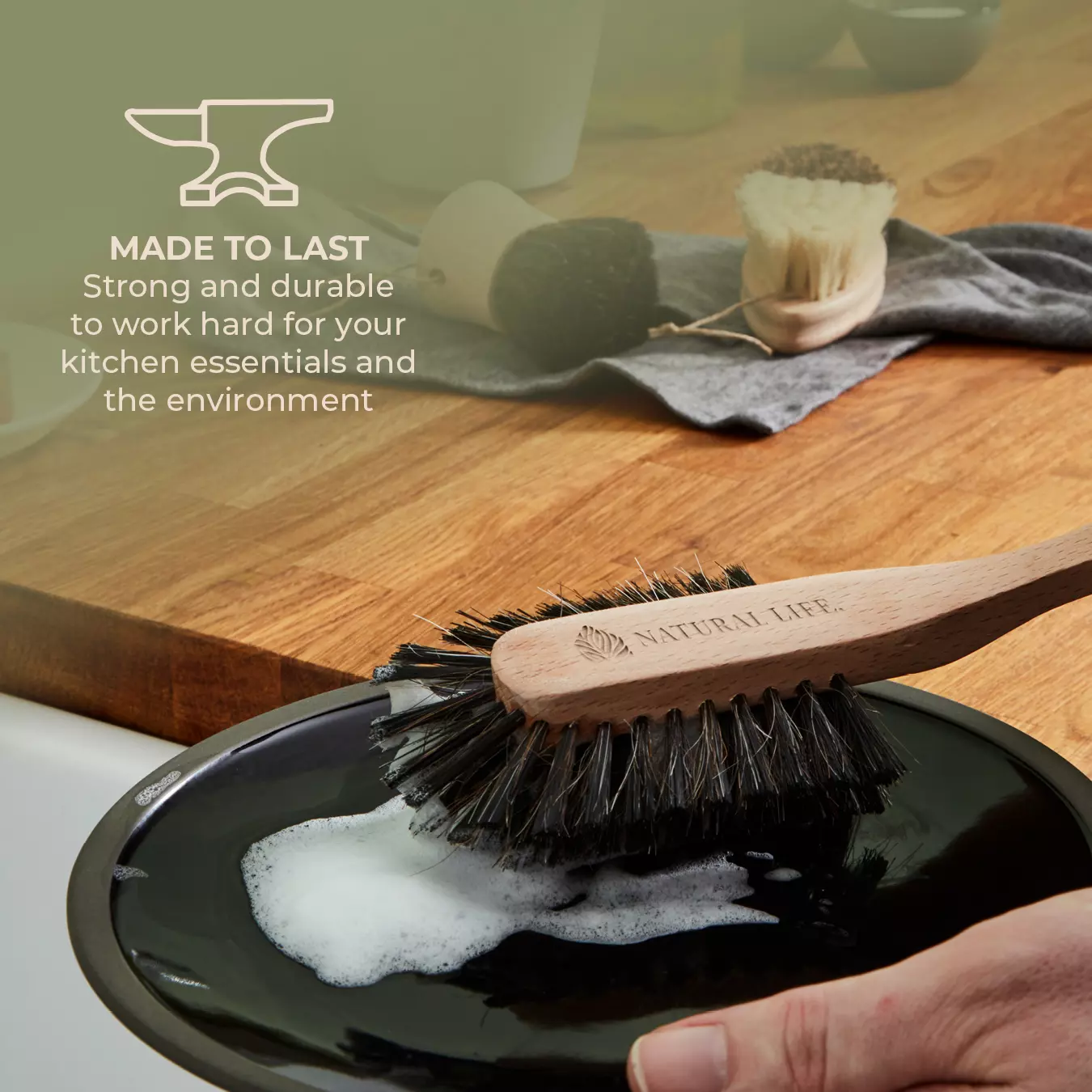 Cover all bases with this Tower Natural Life Kitchen Set which includes a fan tail dish brush, pot scrub brush and vegetable scrub brush. Made from 100% natural materials the set is biodegradable and recyclable, including its packaging, for an all-round environmentally friendly product. The durable nature of the materials ensures long-lasting products, working hard for your kitchen essentials and for the environment. When you buy this kitchen set you contribute to the re-planting of forests - which means doing your bit for the planet from the comfort of your own home. Complete the natural look in your kitchen with the Tower Natural Life Dustpan and Brush.