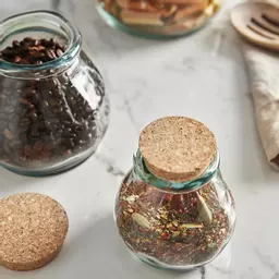 100 percent recycled glass storage jar with cork lidNo chemicals or nasties completely natural and sustainable