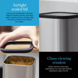 The lid features a glass viewing window, so you can monitor the contents without needing to open the lid. Take the guesswork away from knowing when it’s time to refill.