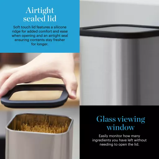 The pasta jar features a soft touch airtight lid to lock in the freshness, so your ingredients stay fresher and taste better for longer. The lid includes silicone ridges for added ease and comfort when opening.