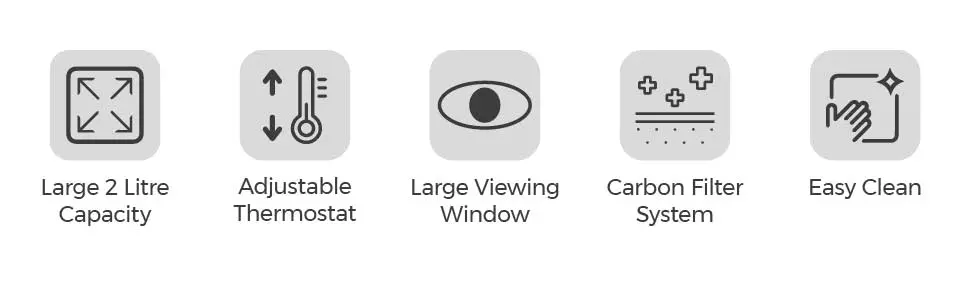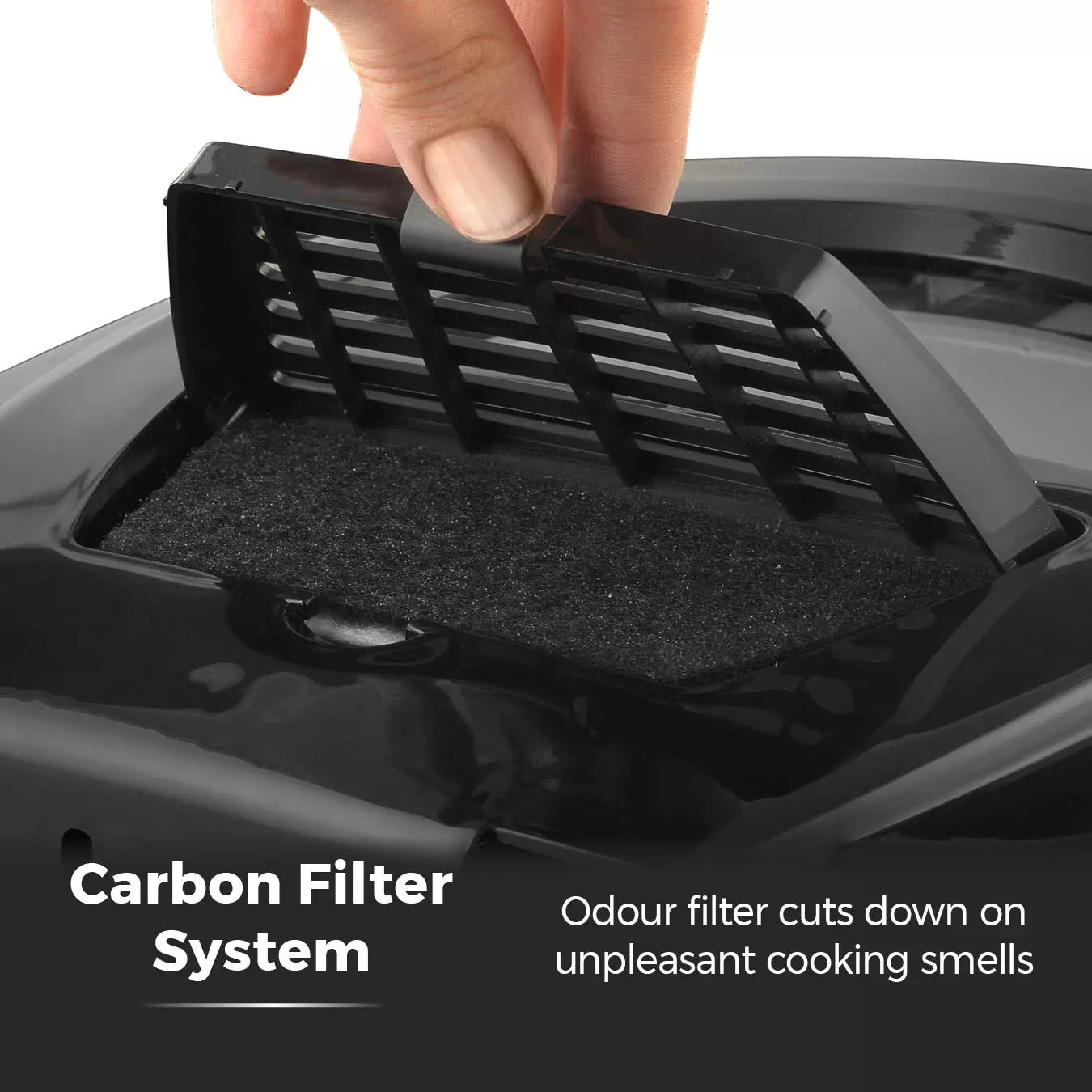 The non-stick enamel cooking pot & removable parts require a simple wipe clean to remove grease and food residue, for an even easier clean up after cooking. A built-in carbon filter ensures unpleasant cooking smells aren't left lingering around, keeping your kitchen fresh and odour-free after frying.