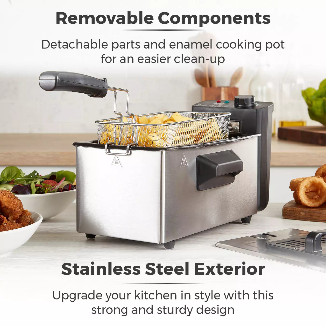 Traditional chip shop-style food is made easy using this 3L Stainless Steel Deep Fat Fryer. With all the same premium qualities in a smaller size, this deep fat fryer allows you to make anything from a quick snack to a filling meal – ideal for couples and small families. Upgrade your kitchen with the stylish design of this deep fat fryer - its strong and sturdy properties ensure a long-lasting appliance for your smaller cooking needs.