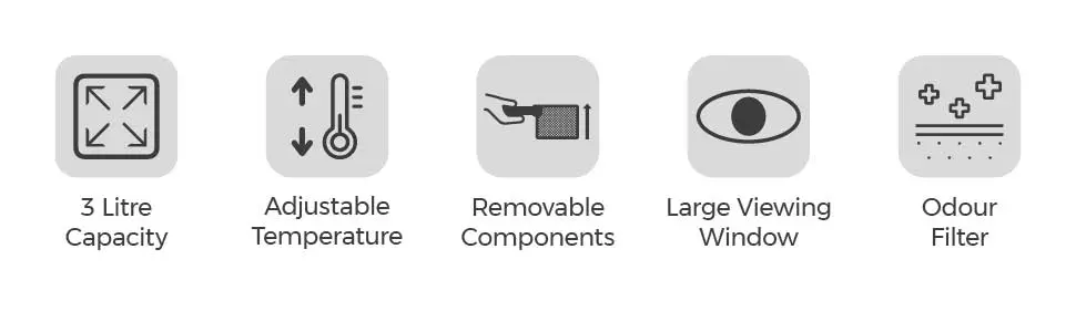 Easily adjust the temperature of the fryer between 130-190°C to perfectly cook your favourite foods, with removable components and enamel cooking pot for easily wiping away grease and stuck-on food residue after use. Its large viewing window provides a clear view of your food so you can easily monitor it during the cooking process, whilst a built-in filter prevents cooking smells being released from food as you fry, keeping your kitchen odour-free.