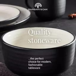 This Cascade Dinnerware Set intertwines modern design and classic colourways to give your dining room a rustic feel. Each piece is brought to life with a cream gloss interior which contrasts beautifully against the matte black outer coating. Finished with a distinct ripple-effect embossing on every item, this collection is sure to leave a lasting impression on your guests. This 16-piece set can serve up to 4 people at a time, providing you with 4 dinner plates, 4 side plates, 4 bowls and 4 mugs. The crockery is constructed using durable stoneware that’s suitable for both special occasions and everyday use. Items are all microwave and dishwasher-friendly.