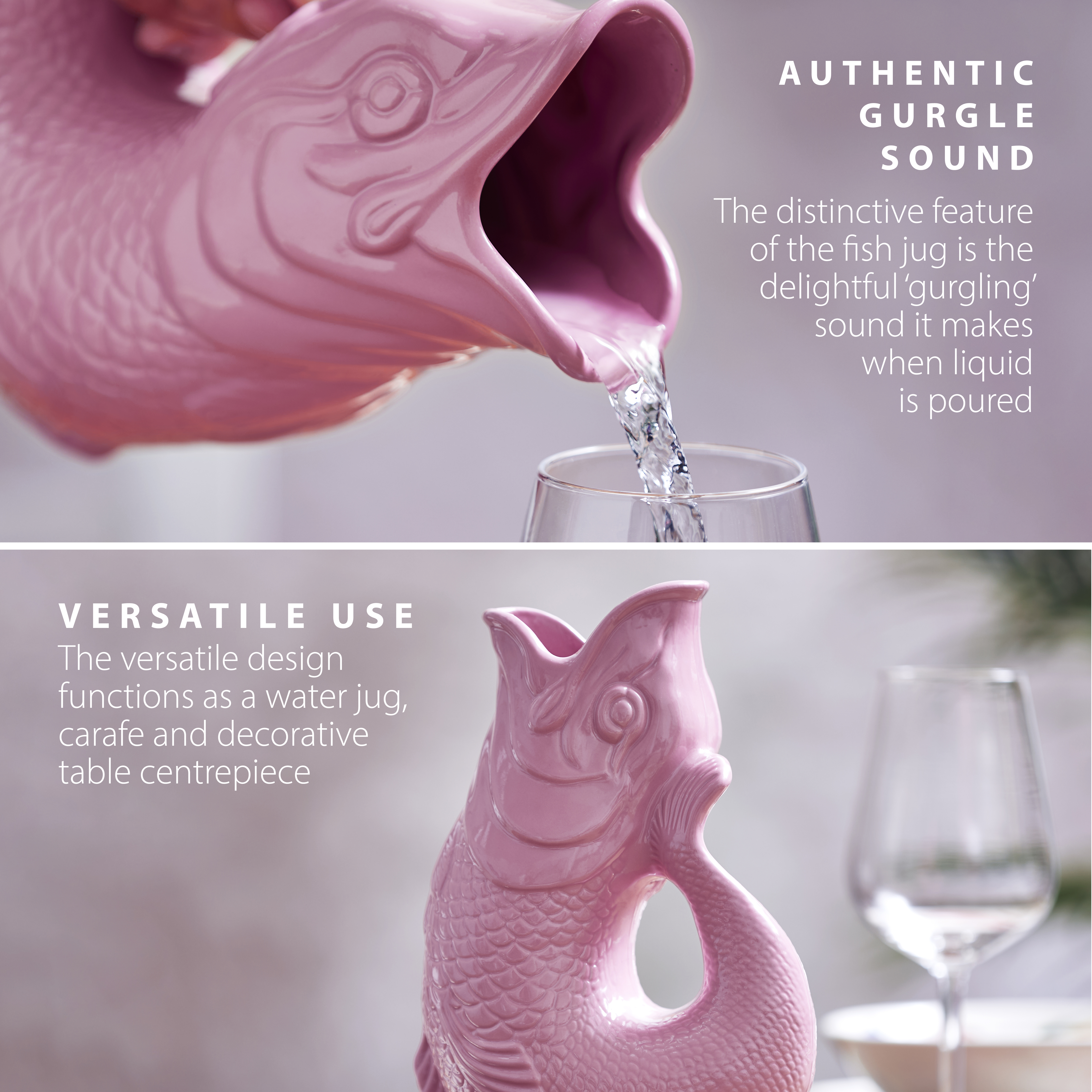 One of the hallmarks of the fish jug has always been the authentic gurgling sound it makes whilst pouring. It adds an extra layer of charm to any table setting and works as a conversation starter. The jug produces the signature sound when pouring it at least three quarters full.