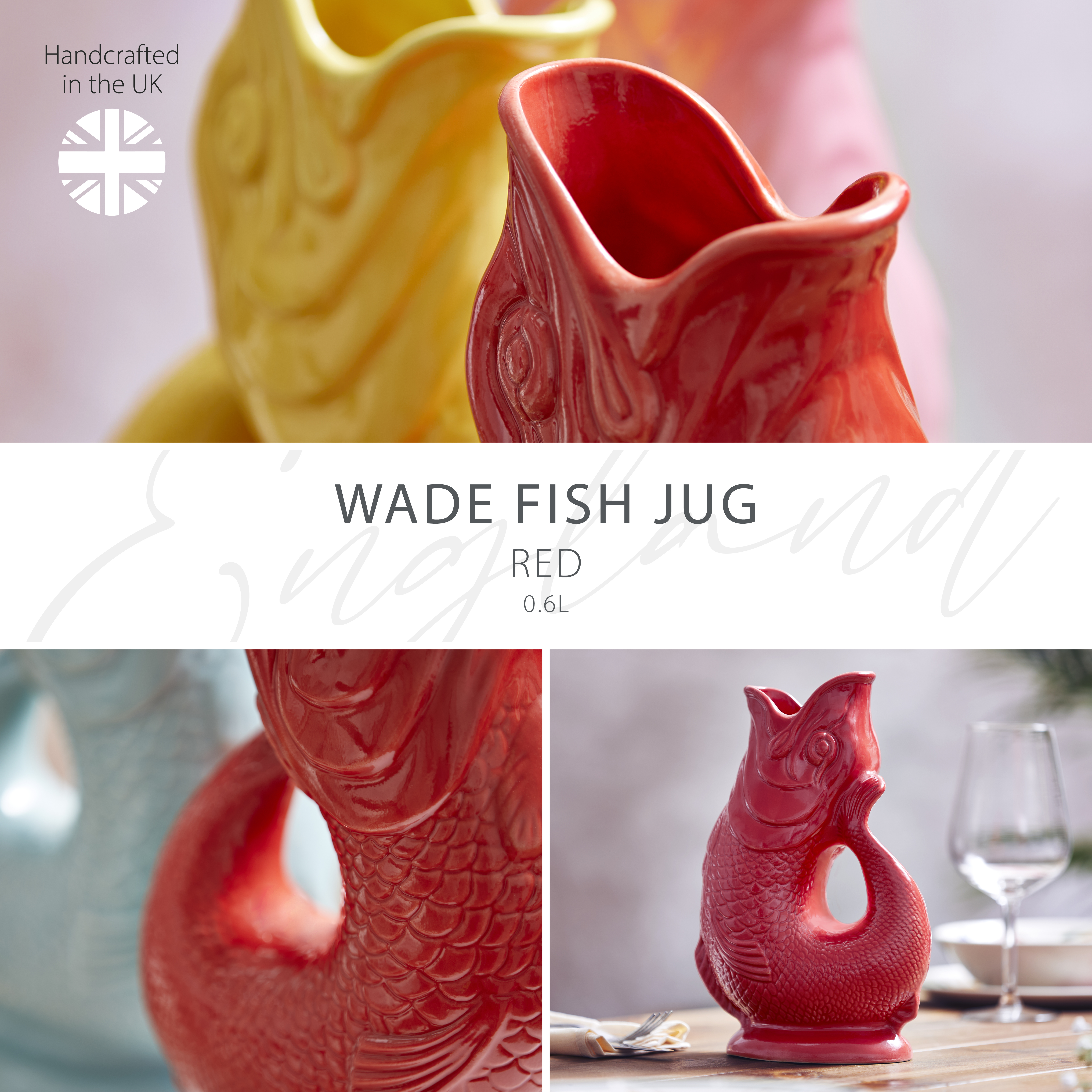 Add a touch of UK ceramic heritage to your home with this 0.6L Fish Jug from Wade. Created using the original iconic Wade design that continues to delight homes across the world for over 150 years. This fish jug is the perfect statement piece for any home. Handcrafted in Stoke-on-Trent, the heart of the pottery industry using English Earthenware, it showcases and celebrates exceptional craftmanship. The 600ml capacity means you can use it as a water jug or wine carafe at family mealtimes or social gatherings, while also being the ideal ornament, vase or table centrepiece, it just oozes style. The unique gurgling sound has long been a hallmark for the jug and it will produce the sound when pouring the jug if it is at least three quarters full. Formed in the shape of a fish, the mouth perfectly lines up to create an easy pour spout, whilst the tail curves up to create an ergonomic handle with a comfortable grip. It is the perfect gift for any heritage brand lover and would be great for weddings, birthdays and housewarming parties. Handwash is recommended to maintain the glaze and to keep the jug looking its best.