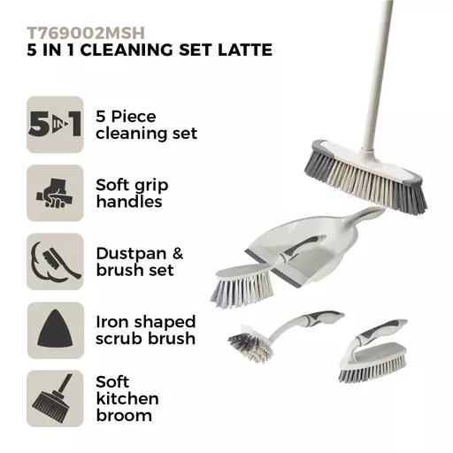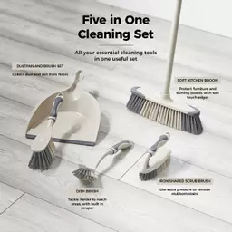 This ergonomically designed Tower 5-in-1 brush set has all the tools you need for a thorough clean of your house. Featuring a soft kitchen broom, dustpan & brush, dish brush & an iron shape scrub brush for all your cleaning needs