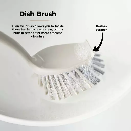 Fan tail dish brush cleans the hard to reach areasKitchen broom offers compact storage
