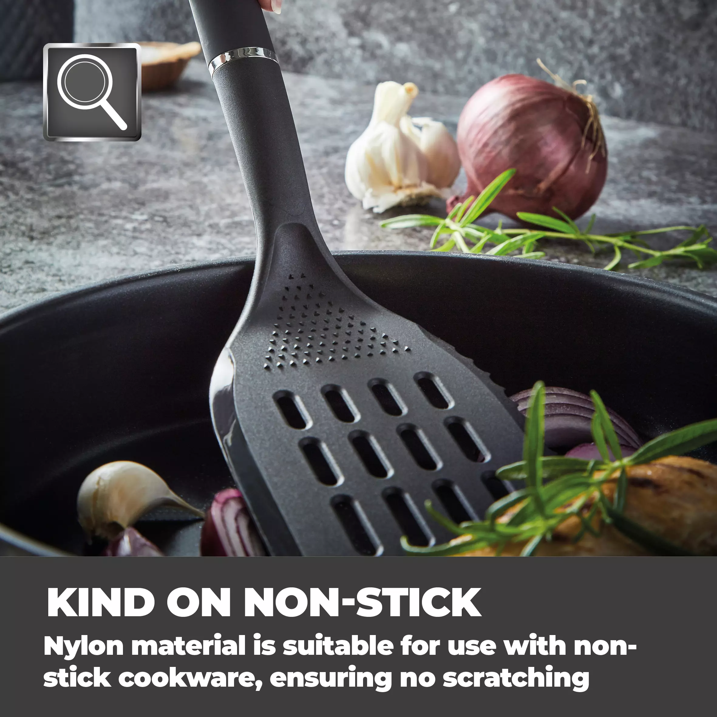 Made from durable nylon, each utensil is suitable for use with non-stick pots and pans, preventing marks and scratches