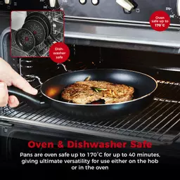 Pans are oven safe up to 170C for up to 40 minutes, giving ultimate versatility for use on the hob or in the oven. Suitable for all hob types, except induction, while the Aeroglide non-stick coating makes the pan dishwasher safe and easy to clean