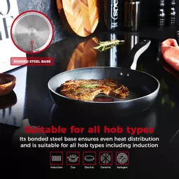Energy efficient bonded steel base heats up quickly and evenlySuitable for all hob types including induction