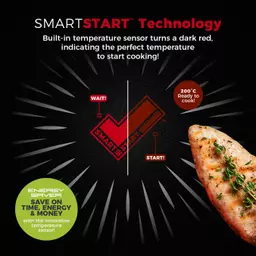 Smart Start technology activates at 150 degrees CelsiusIndicates the pan is at optimum cooking state at 200 degrees Celsius