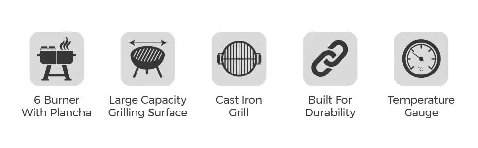 Goucho Six Burner Gas BBQ and Plancha with Precision Heat Thermometer and Waterproof Cover