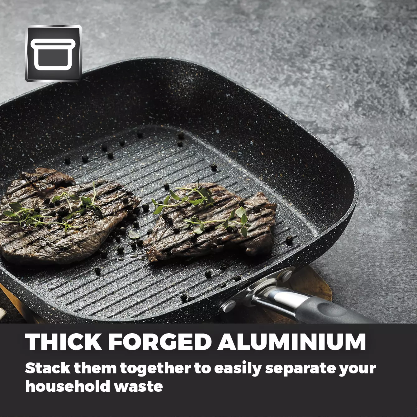 Forged 3mm alu body for even faster heat distributionUltra durable stone coating free from PFOA and ceramic