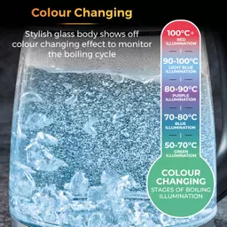 Colour-changing illuminations provide a visually-appealing way to monitor the boiling cycle, lighting up with a specific colour to let you know when the water is boiled to your desired temperature