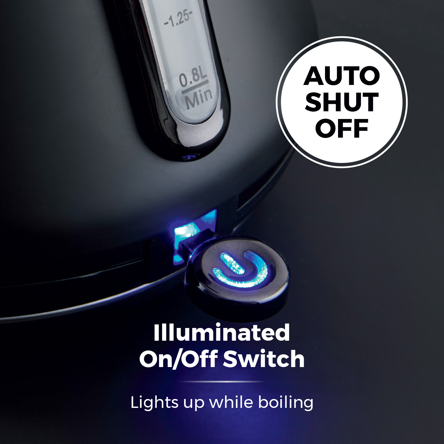The easy to use on/off switch has a blue indicator light to show when the kettle has finished boiling