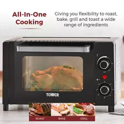 Cook with convenience using this compact Tower 12 litre mini oven. A perfect solution for smaller kitchens, the mini oven offers all of the functionality of a conventional oven in one compact and easy-to-use worktop appliance that can be stored away in the cupboard. You can roast, bake, grill, toast and create a wide range of delicious meals, including chicken, chips, vegetables fish and even cake with a few turns of the easy to use dials.