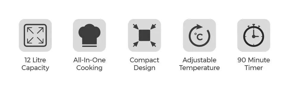 With a spacious inner capacity, the 12 litre space can easily fit a small chicken inside, giving you versatility to cook food for yourself or for dinner guests