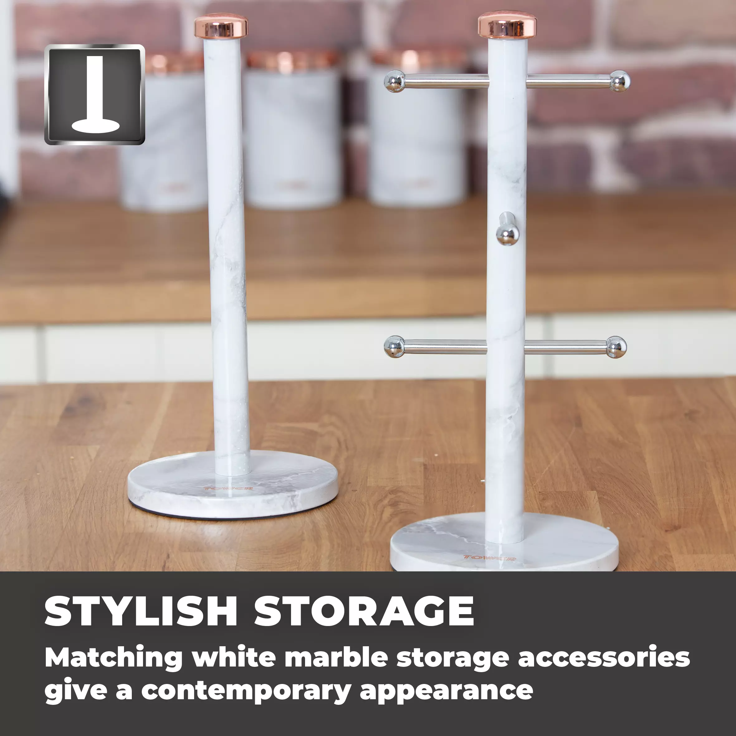 Store your cups and kitchen roll in one convenient place with the matching marble storage accessories from Tower