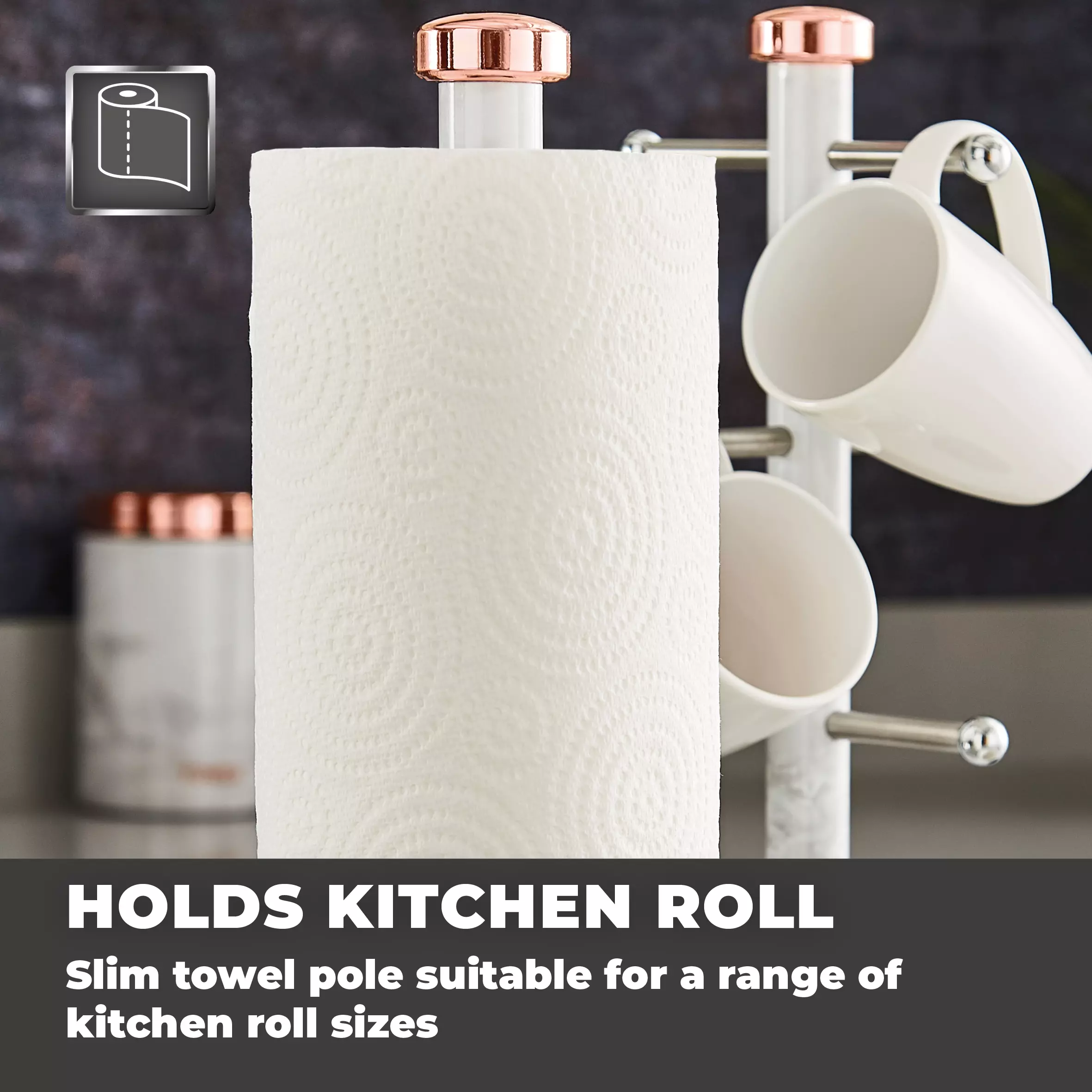 The towel pole features a slim central pole to provide a comfortable hold for a range of kitchen roll sizes, ensuring your paper towels are kept dry and close to hand at all times. Both accessories feature a weighted base with a soft, non-scratch underliner, each topped with a rose gold cap to add an elegant finishing touch. A simple wipe clean is recommended to maintain their quality appearance.