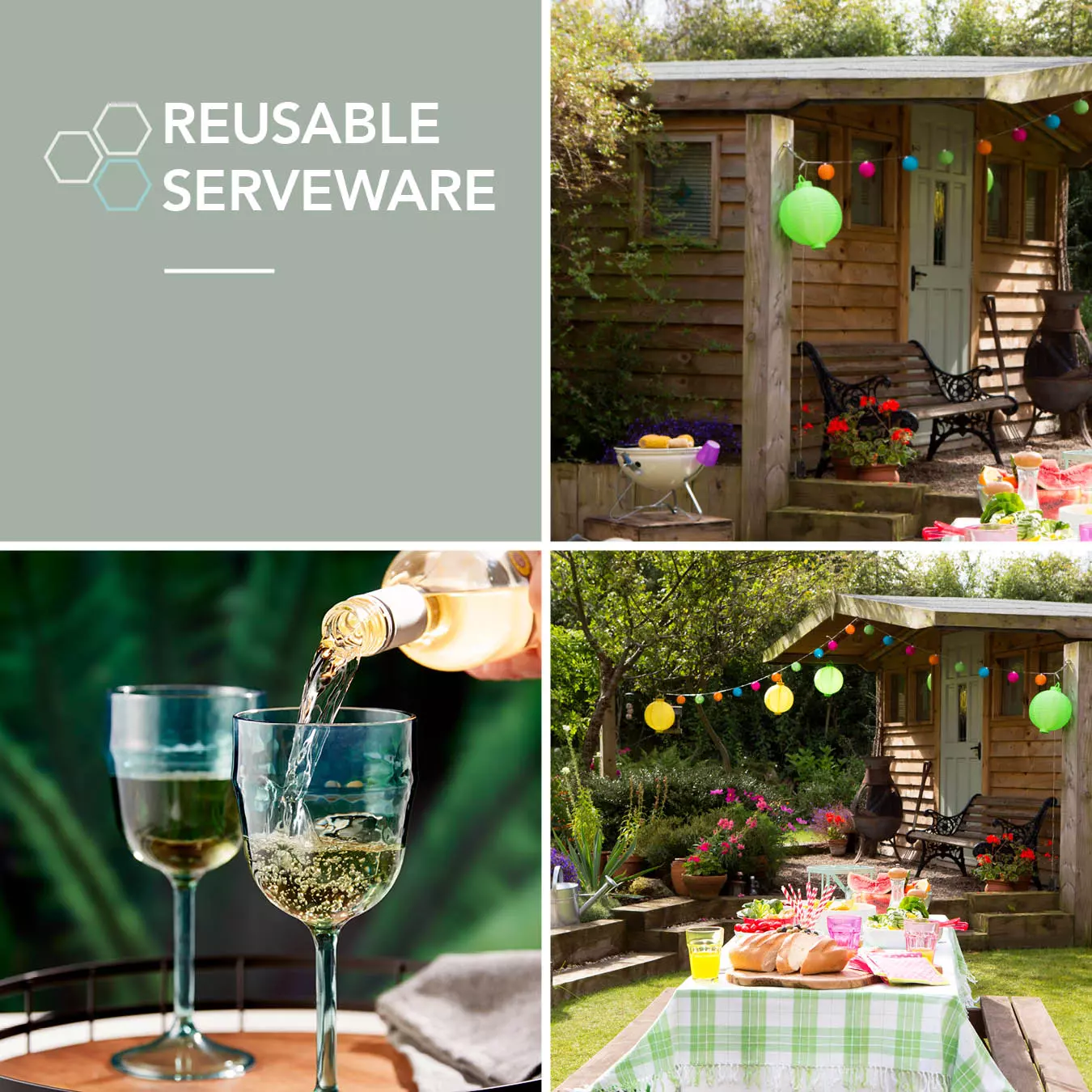 Great for indoor or outdoor entertaining, this drinkware set comes with 4 plastic wine glasses and a generous 400ml capacity each to serve wine, gin, cocktails and soft drinks