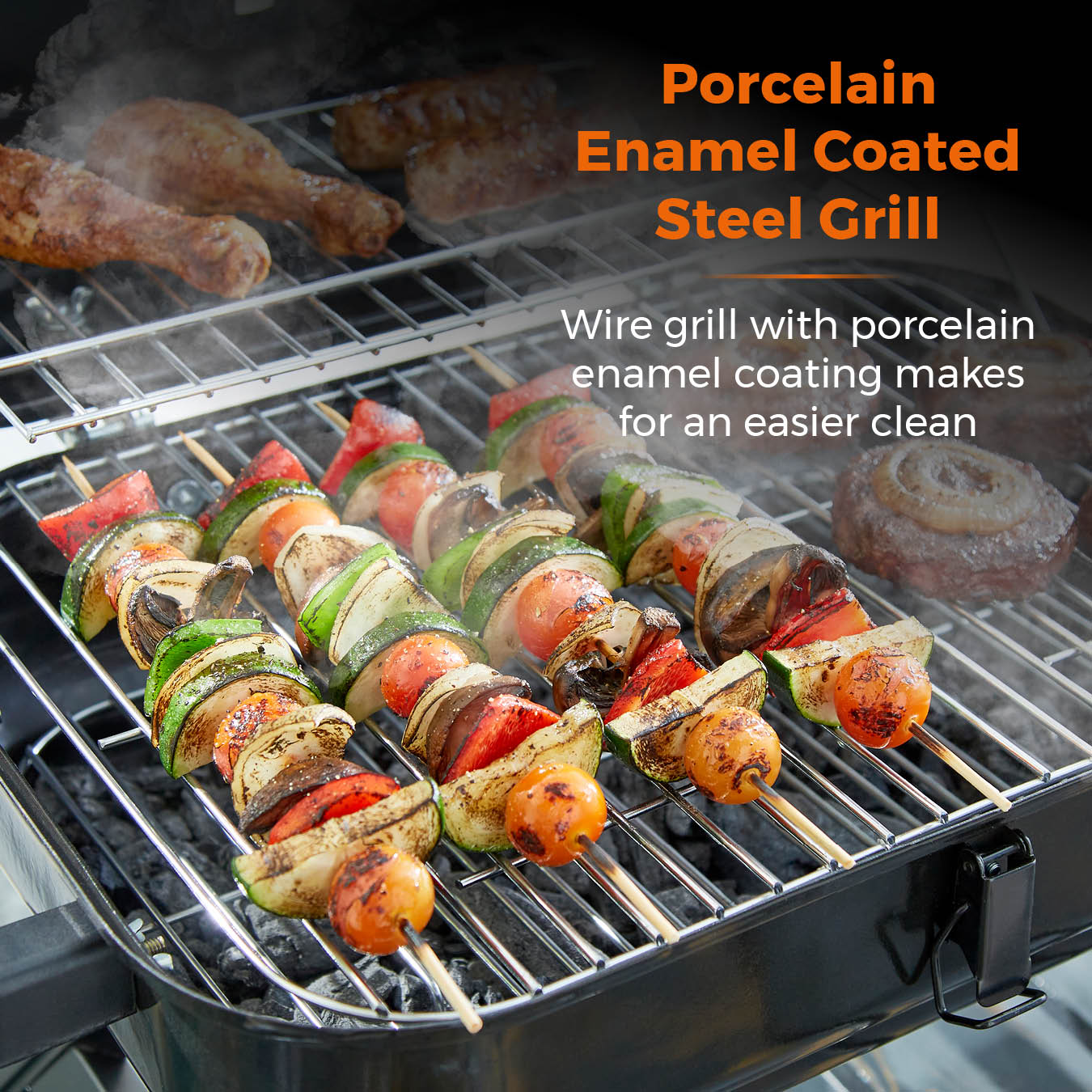 Steel grill features porcelain enamel coating that is robust and is easier to clean; meaning every stage of the BBQ experience is effortless.