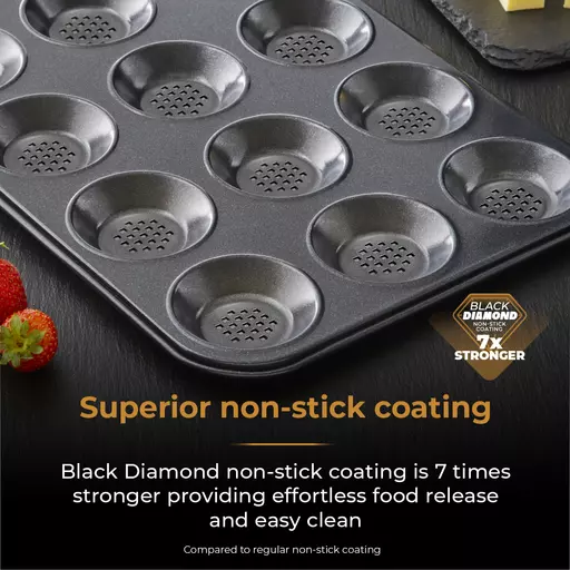 12 cup shallow tart tray is perfect for tarts and mince pies0.8mm aluminized steel is durable and hard wearing