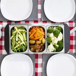 Boasting three large 1.5L compartments with lids - serve up hot and delicious food straight from the table.  The server allows you to conveniently prepare your meals in advance giving you extra time for other preparations