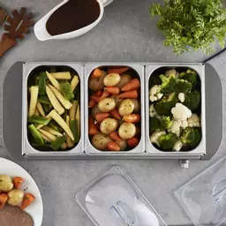 The buffet server comes with insulated trays and lids which are fantastic for keeping your food warm, with each tray retaining heat for up to 4 hours at a time