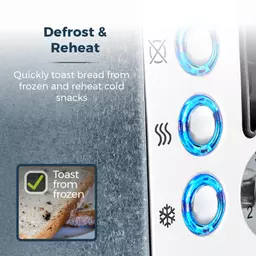 Defrost and reheat functions let you toast bread straight from frozen, for a speedy breakfast solution or to quickly warm up cold snacks
