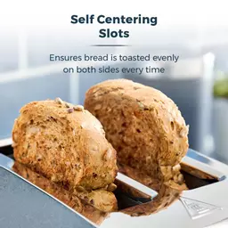 Each slot features a self-centring guide which automatically adjusts to your bread’s thickness and holds it in place for even toasting on both sides
