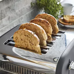 Each slot features a self-centring guide which automatically adjusts to your bread’s thickness and holds it in place for even toasting on both sides