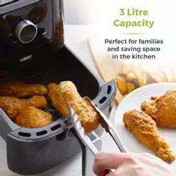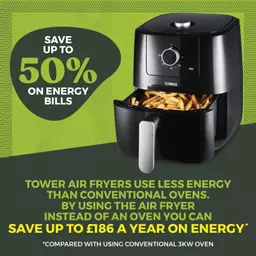 Enjoy your favourite fried food made healthier with this Vortx Air Fryer from Tower. It uses minimal oil to reduce your ingredients’ fat contents by up to 99%, letting you indulge in delicious fried chicken and crispy chips completely guilt-free. Vortx technology ensures your food is cooked with even coverage and traditional fried texture without compromising on taste – you only lose the fat, not the flavour. It works by quickly moving hot air through the fryer, cooking your food faster than a conventional oven and without the excess oil. A 200 degree cooking temperature with 30-minute timer makes mealtimes quick and easy. With a compact design and a 1.5 litre cooking basket, this air fryer is the perfect size for single households and small families. This space-saving air fryer takes up little room on your countertop and can be easily stored in the cupboard when out of use.