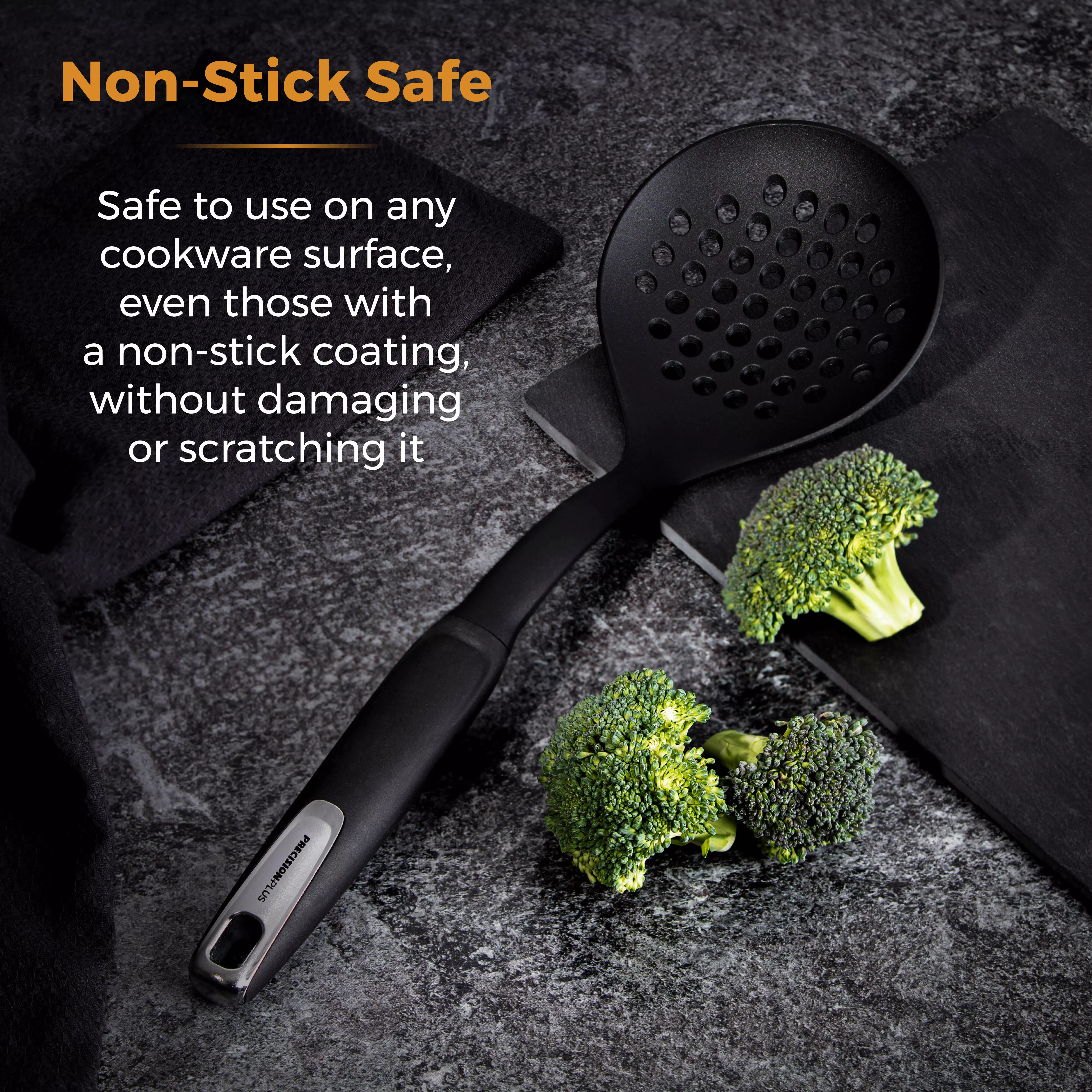 Versatile skimmer is suitable for use on any cookware surface, even those with a non-stick coating without damaging or scratching it.