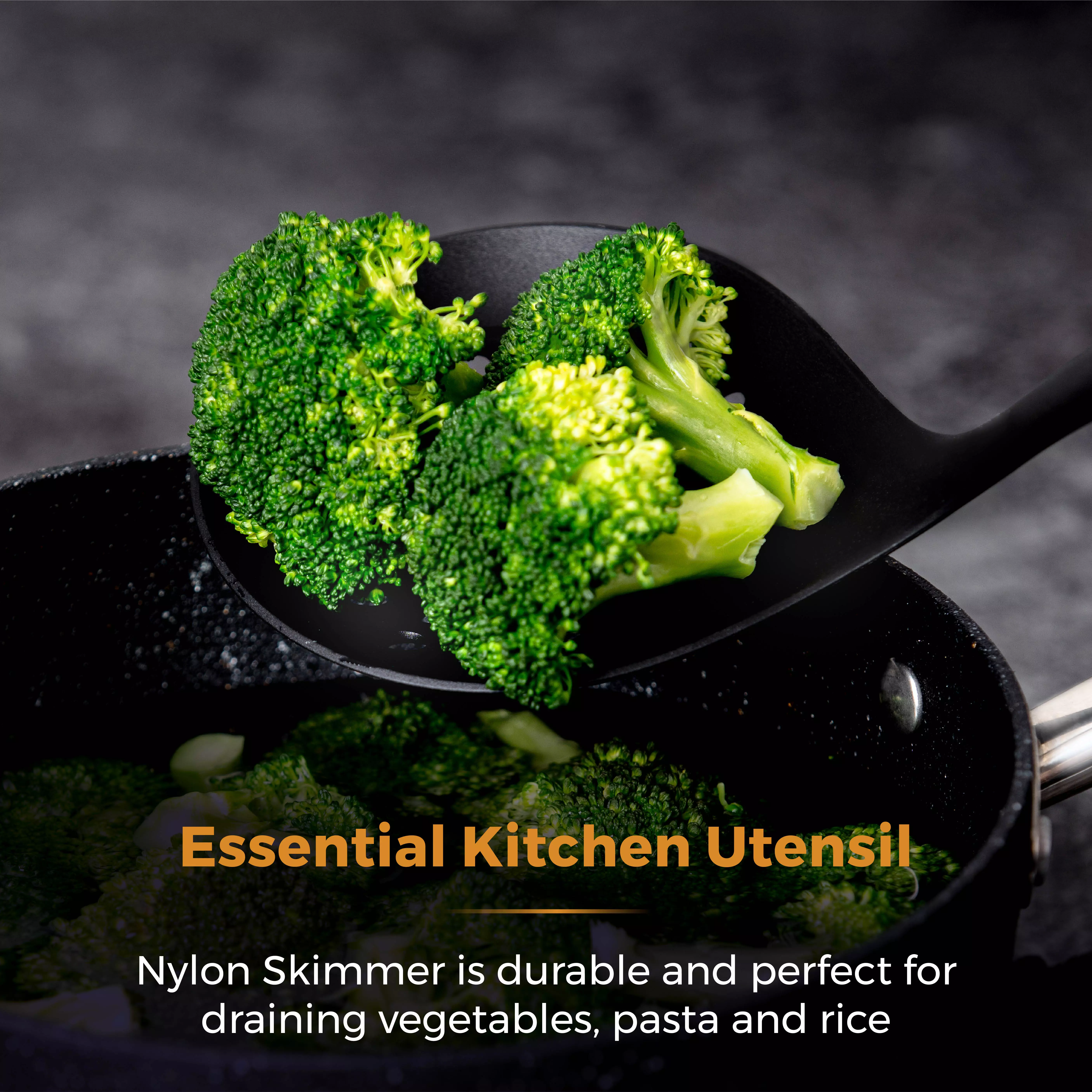 Nylon Skimmer perfect for scooping up veggies / rice or pastaSturdy nylon is safe for non-stick cookware