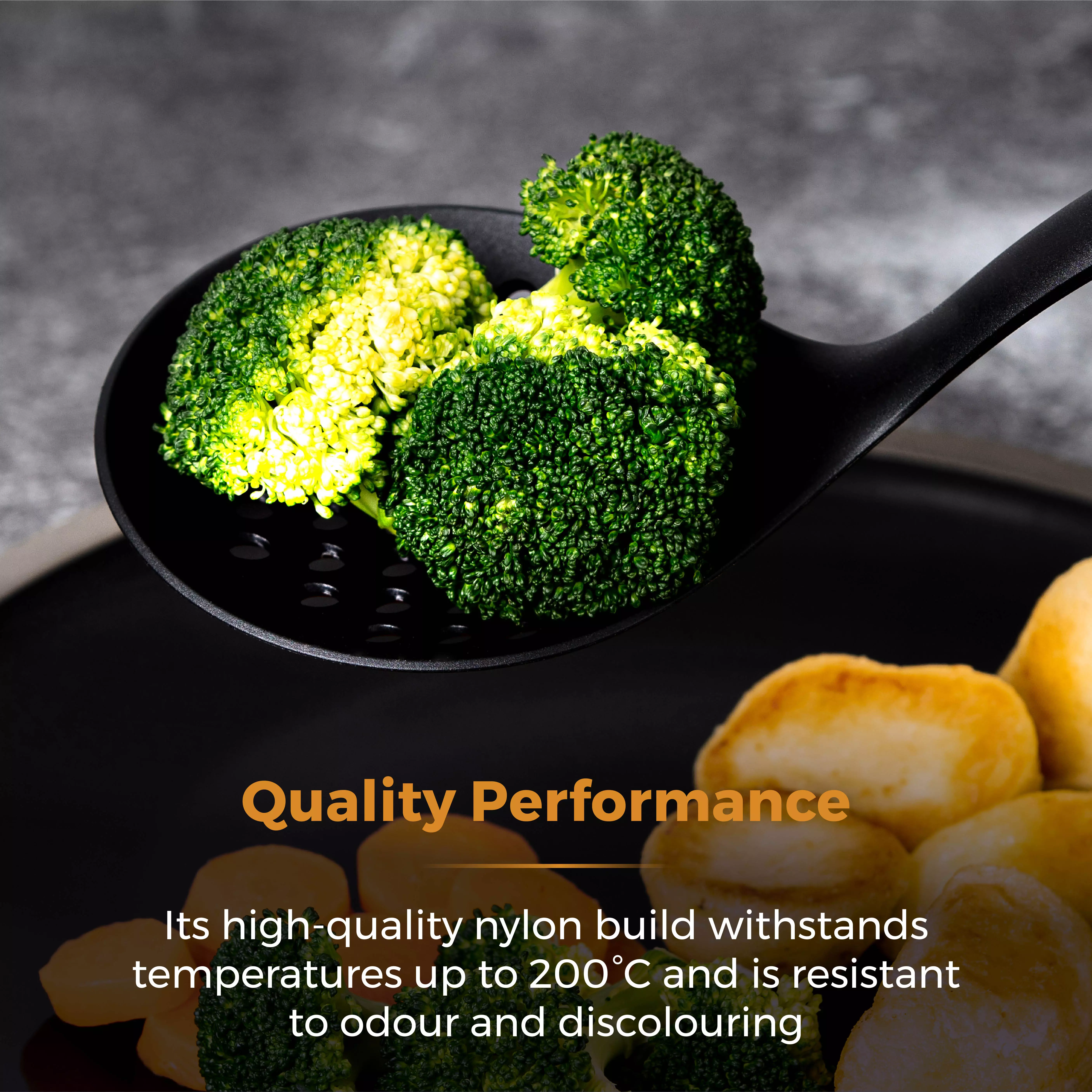 A must-have essential in all kitchens, this robust nylon skimmer is built for strength, perfect for scooping and draining various vegetables, pasta and rice.